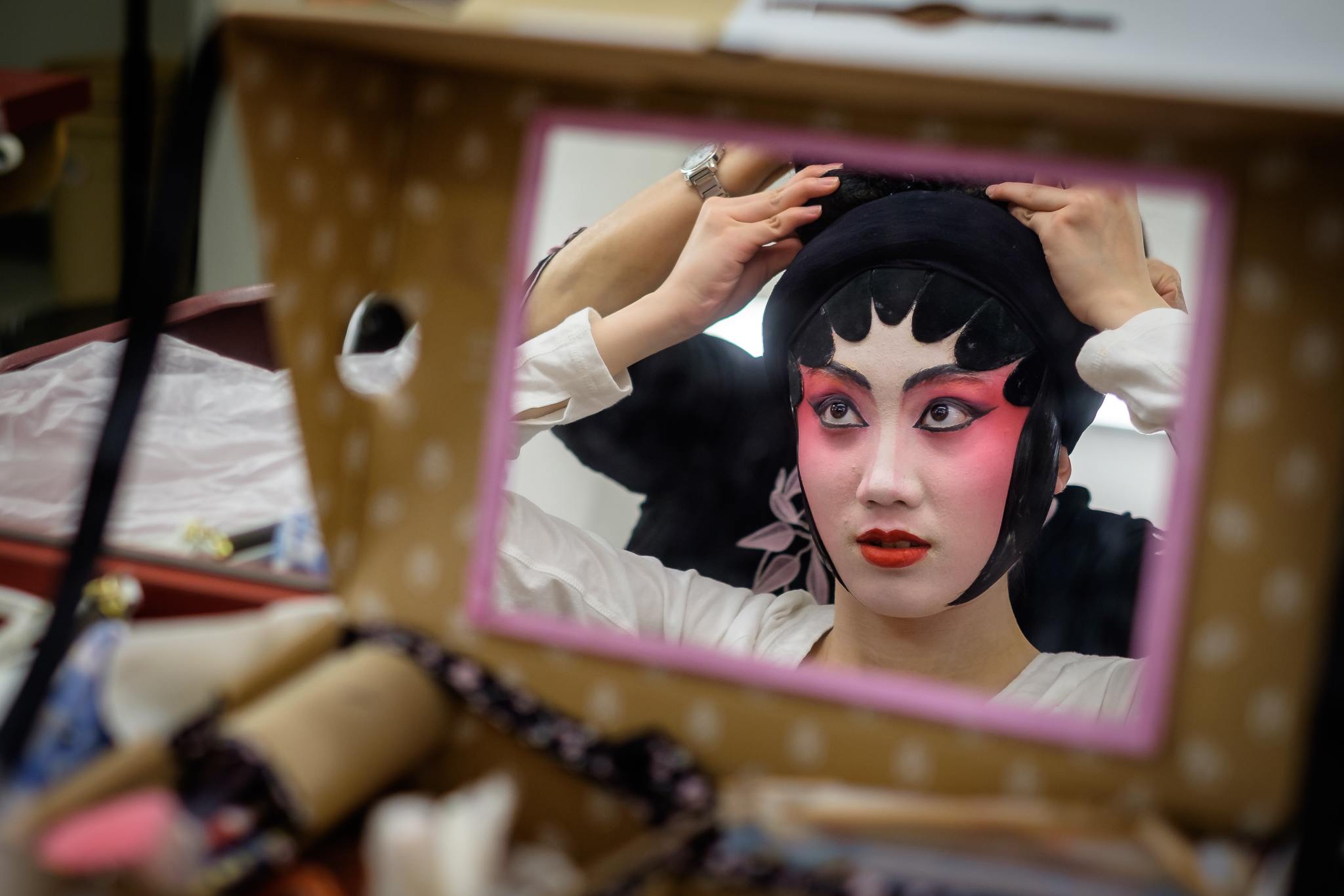The performers need about two to three hours to do their hair and make up. So, I arrived about two and a half hours before the performance to capture the preparation process. Each performer undergoes a magical transformation that’s fascinating to watch. Once remade, their characters become alive, and their prior selves are no longer recognizable. For me, it’s just as enjoyable to capture the transformation as it is the performance. I chose a 35mm lens to shoot this process because I like the sharpness and nice bokeh the lens produces.
